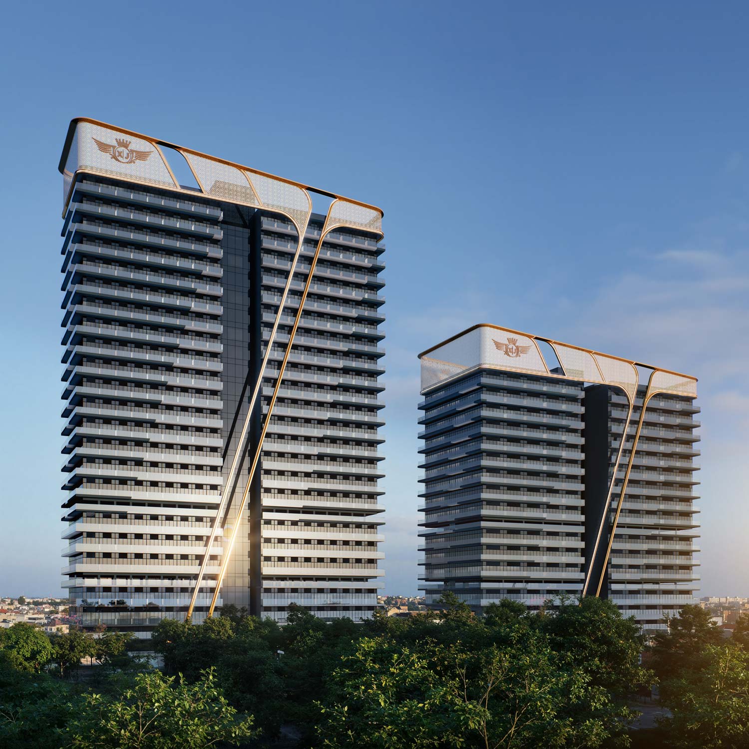 Landmark twin towers with modern glass façade and strong corporate presence